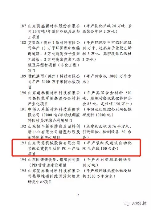 2020年2月 12日,天意機(jī)械的裝配式建筑自動(dòng)化PC生產(chǎn)線項(xiàng)目入選2020年省新舊動(dòng)能轉(zhuǎn)換重大項(xiàng)目庫(kù)第一批優(yōu)選項(xiàng)目。對(duì)于優(yōu)選項(xiàng)目省內(nèi)各級(jí)政府將會(huì)進(jìn)一步加大政策協(xié)調(diào)支持力度,全面落實(shí)土地、能耗、用水、環(huán)境容量、資金等“要素跟著項(xiàng)目走”機(jī)制,全面建立項(xiàng)目評(píng)審綠色通道,簡(jiǎn)化審查審批環(huán)節(jié),在依法合規(guī)前提下加快項(xiàng)目手續(xù)辦理進(jìn)度。天意機(jī)械的裝配式建筑自動(dòng)化PC生產(chǎn)線項(xiàng)目入選省優(yōu)選項(xiàng)目,既體現(xiàn)了省政府對(duì)該項(xiàng)目的重視,也體現(xiàn)出該項(xiàng)目具有新舊動(dòng)能轉(zhuǎn)換的先進(jìn)性。