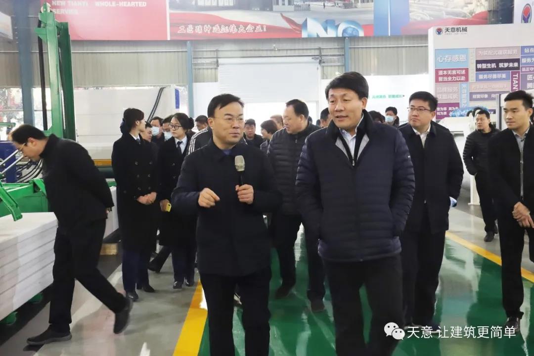 12月18日上午,鄒城市委常委、副市長欒濤一行蒞臨天意考察全市新舊動能轉(zhuǎn)換現(xiàn)場觀摩項目——裝配式建筑自動化PC生產(chǎn)線項目。兗州區(qū)委常委、區(qū)政府副區(qū)長、黨組副書記屈耀武,天意機(jī)械董事長劉洪彬陪同考察。