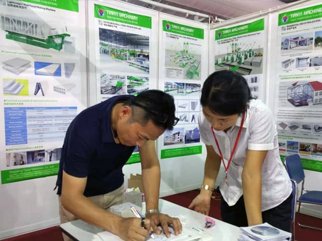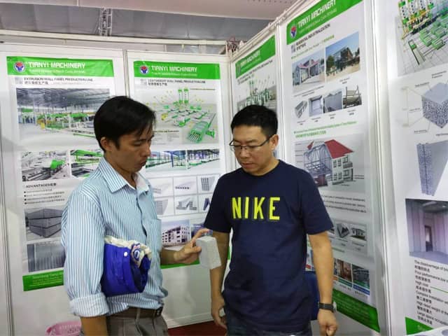 越南是亞洲經(jīng)濟(jì)發(fā)展速度的國家之一。近年來,越南正加大對基礎(chǔ)設(shè)施建設(shè)和主要城市居民住宅的改造力度,綠色建筑建材裝備缺口巨大,為適應(yīng)市場需求,天意機械攜綠色建材設(shè)備參展了此次展會。展會期間,外貿(mào)銷售部李經(jīng)理,認(rèn)真對待每位來訪的客戶,詳細(xì)向其介紹天意機械專利產(chǎn)品輕質(zhì)墻板生產(chǎn)線,復(fù)合墻板生產(chǎn)線,保溫裝飾一體化板生產(chǎn)線等產(chǎn)品的優(yōu)勢,以及設(shè)備在東南亞地區(qū)建筑建材市場的影響,展會現(xiàn)場就有多數(shù)客戶,初步簽訂了輕質(zhì)墻板生產(chǎn)線、復(fù)合墻板生產(chǎn)線加工生產(chǎn)訂單。
